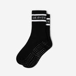 Your new studio essential. These soft, comfortable socks feature a branded grip on the bottom—ideal for Pilates, barre, strength classes, or cozy days at home. Classic in look, functional in design, and easy to pair with any athleisure fit.