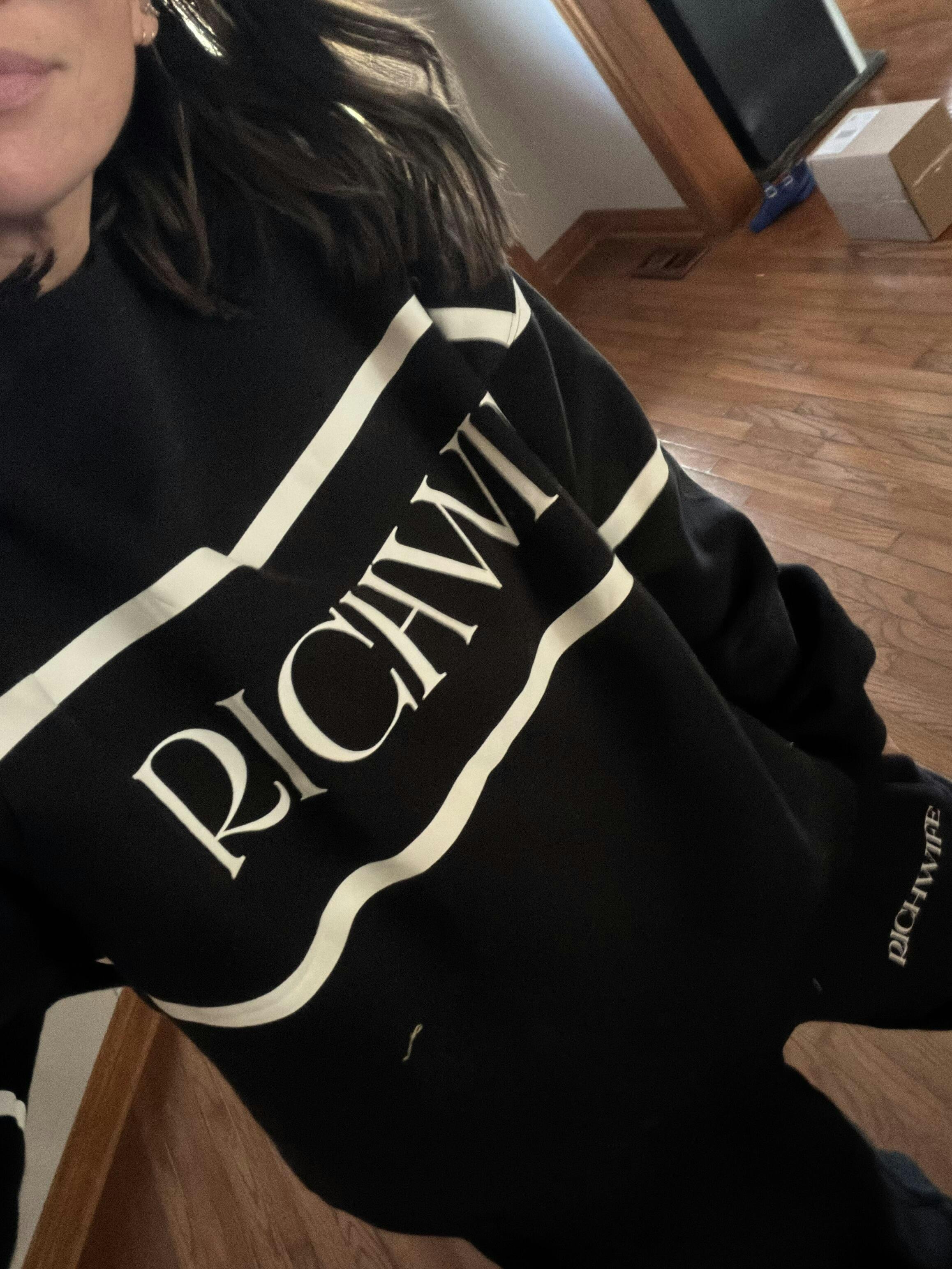 Elevate your loungewear game with our ultra-cozy and lofty RICHWIFE Oversized Sweatshirt. Designed for effortless comfort and bold style, this wardrobe essential features the iconic RICHWIFE logo screen-printed across the front. With its relaxed, boyfriend-fit and drop-shoulder, it’s the perfect mix of laid-back and luxe. Whether you’re layering up for a chill day or making a statement on the go, this sweatshirt’s oversized design guarantees comfort.