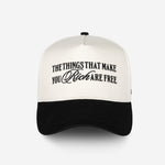 This Cream and Black Snapback Hat features the phrase that defines the heart of our brand: “The things that make you rich are free.” Because true richness isn’t just about wealth — it’s about love, time, health, faith, joy, and the people you share it all with.
